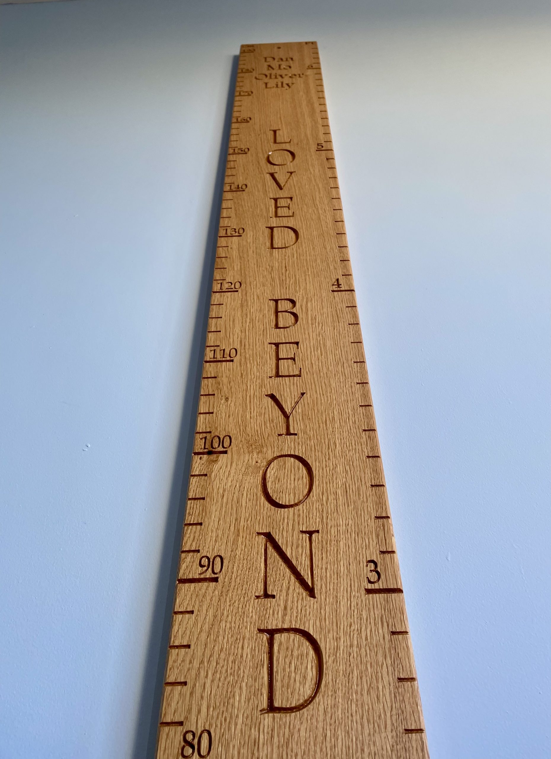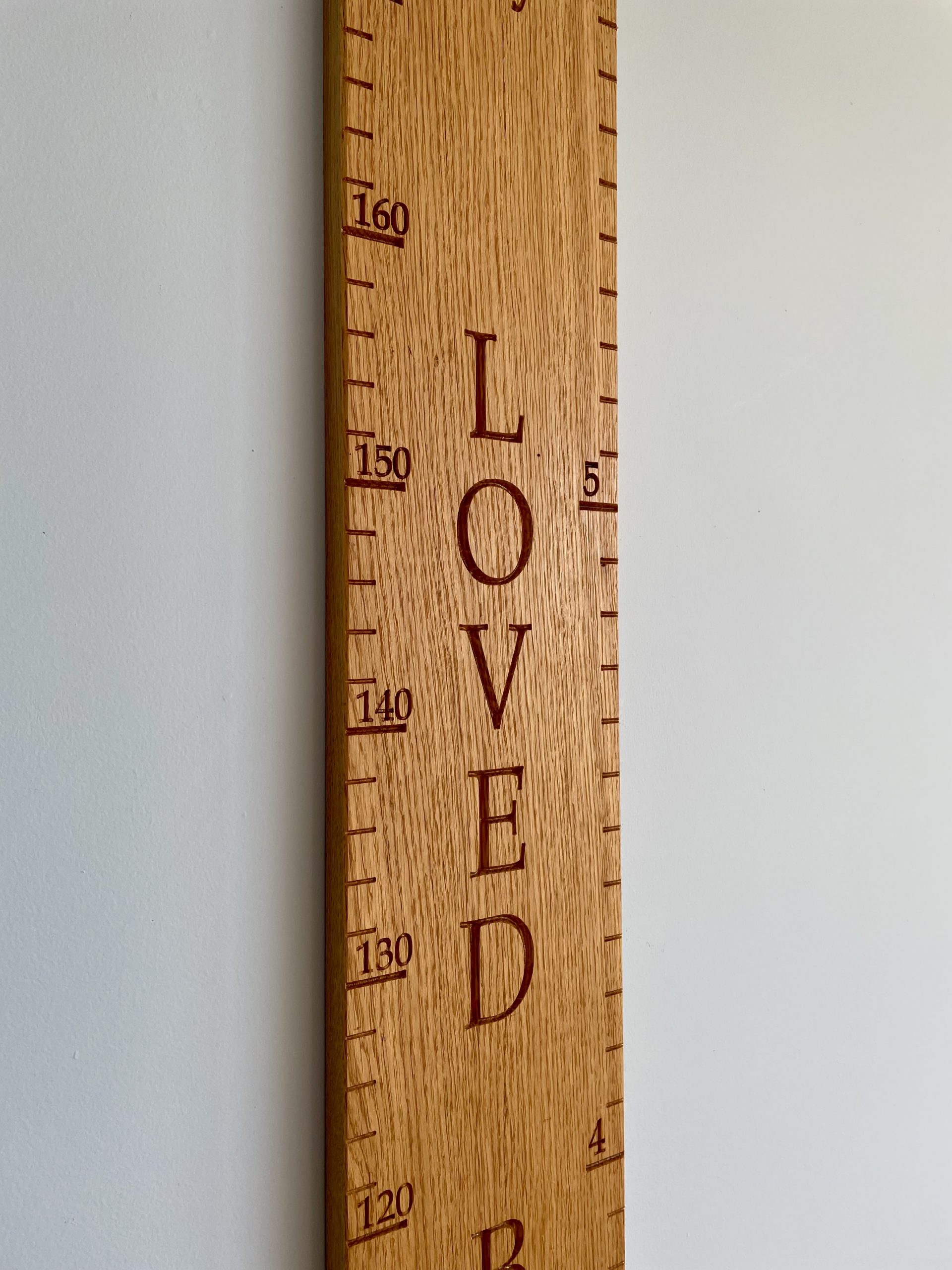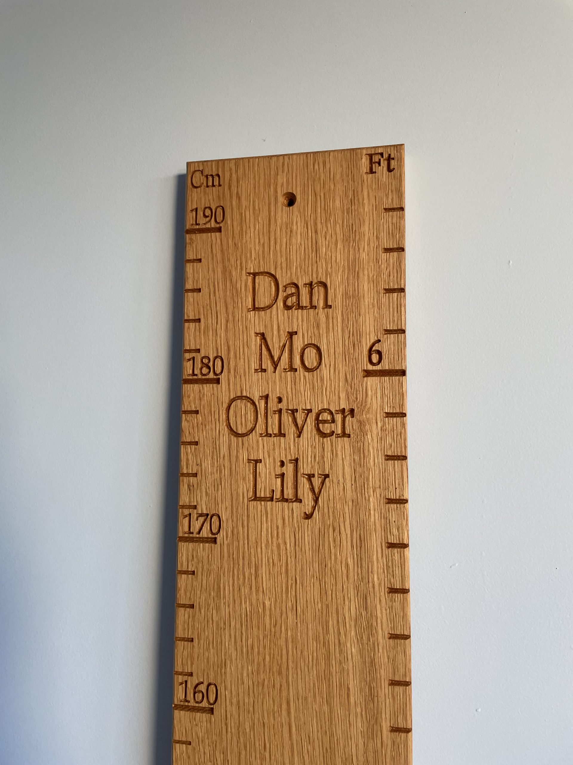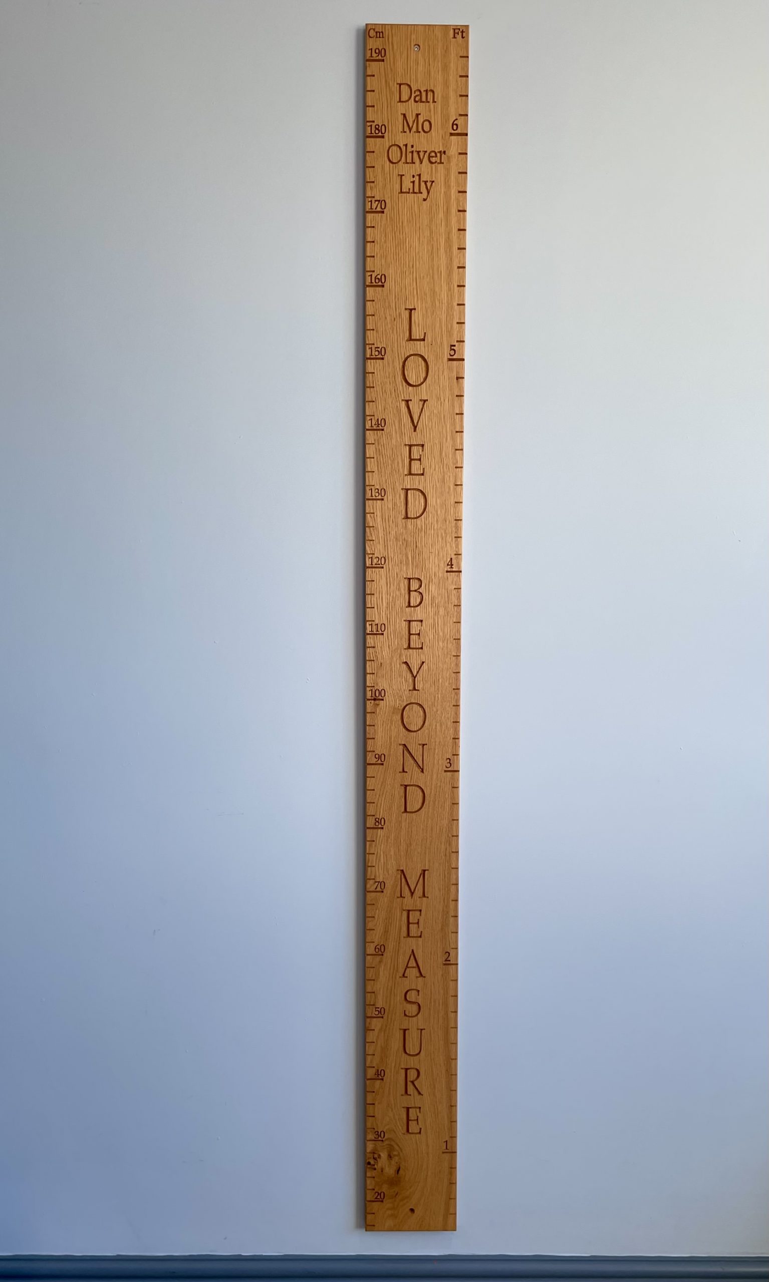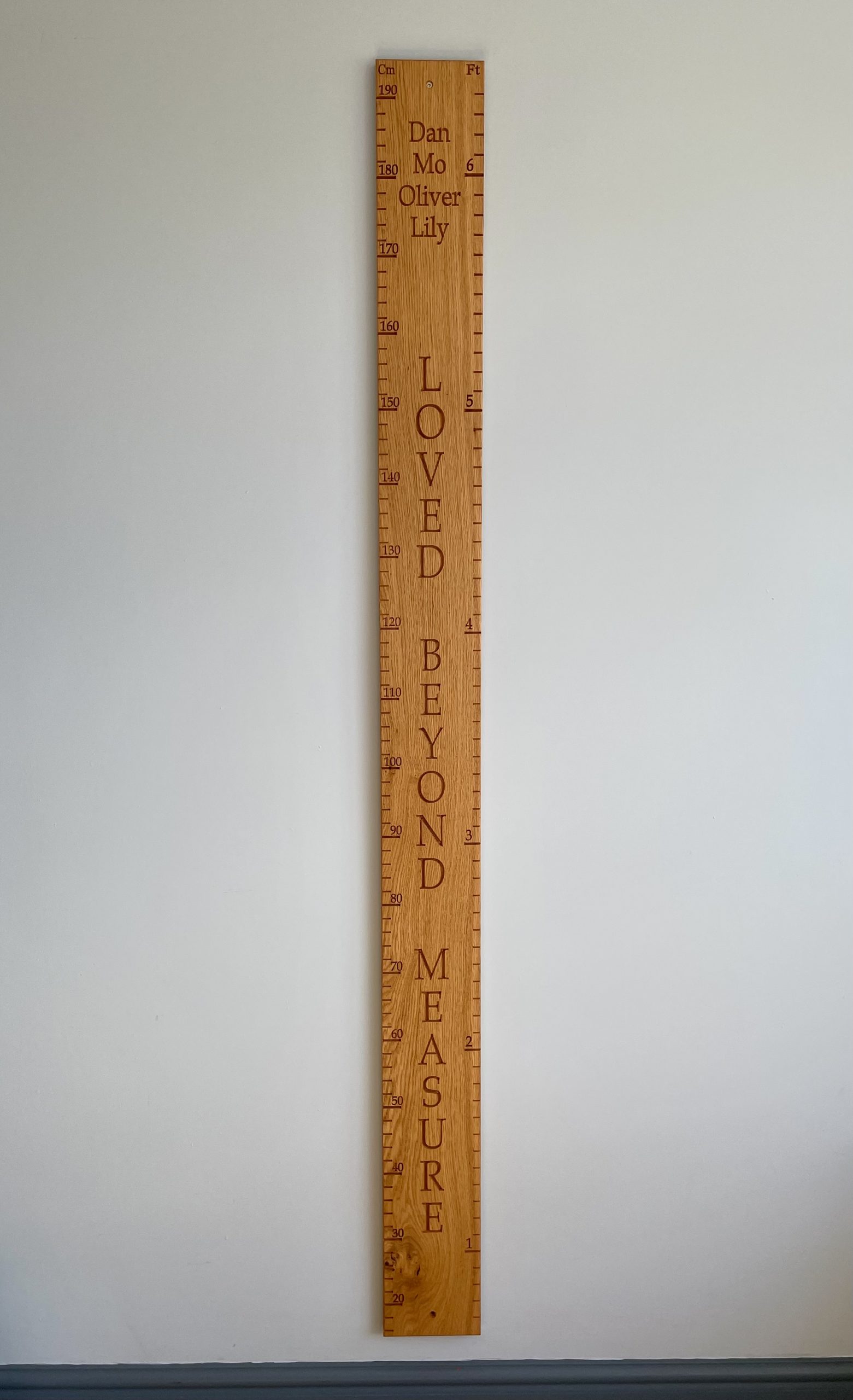 Our family height measurement charts are a giant sized rulers made from solid oak!